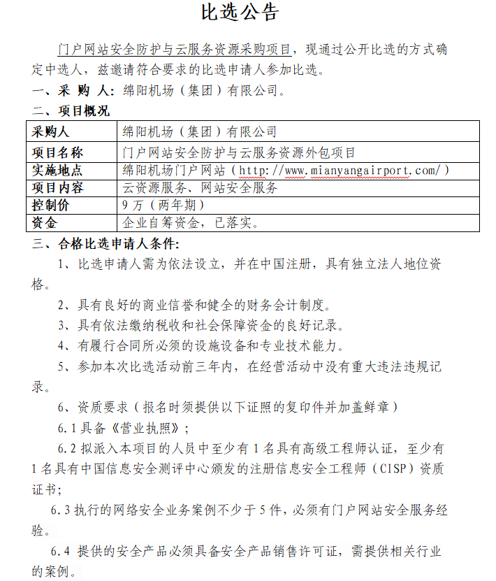 門戶網(wǎng)站安全防護與云服務(wù)資源項目采購(第二次)